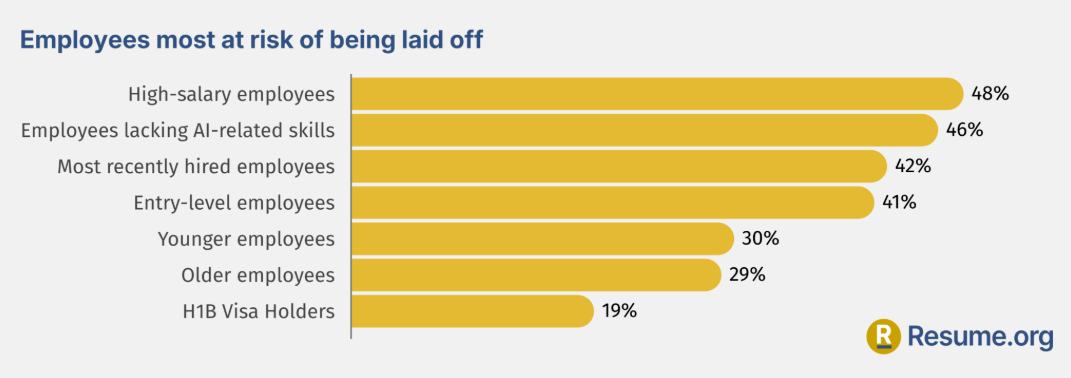Key drivers include economic uncertainty, trade policy, and AI adoption: 35% of layoffs this year cited AI as a factor reducing staffing needs. Alarmingly, 4 in 10 companies intend to replace workers with AI by 2026. Employers say the most vulnerable employees are those with high salaries or lacking AI skills.