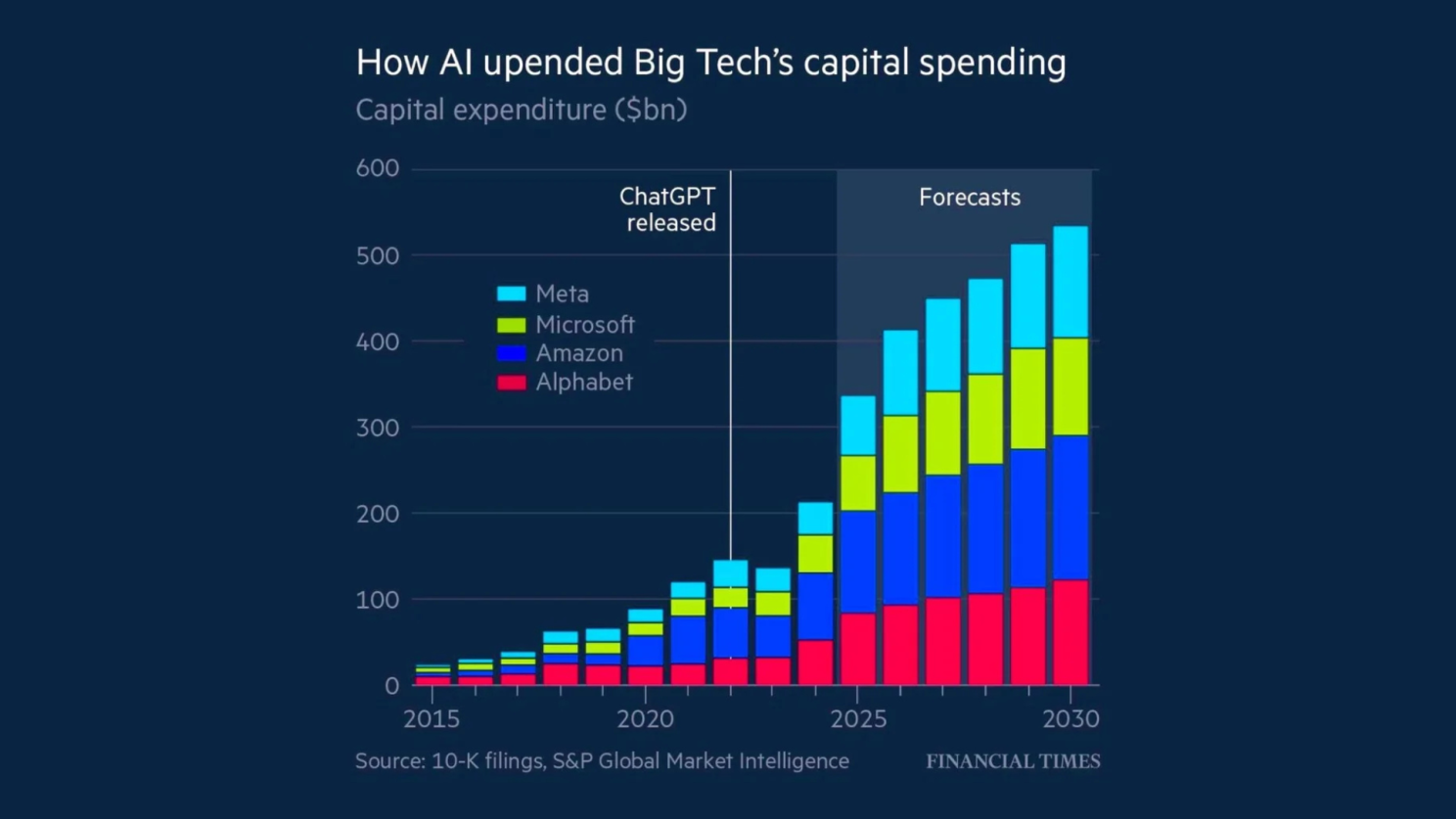 Big Tech’s incumbents still dominate the market. (Alphabet, Amazon, Meta, Microsoft, Nvidia now hold around 70% of the top-20 market cap). Hyperscalers are heavily doubling down on AI infrastructure and talent to defend their lead.